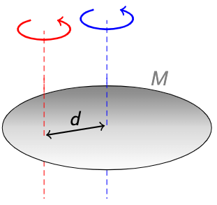 The first is the Parallel Axis Theorem. This theorem states that if you know the MOI for rotation about one axis, then the MOI for rotation around a different but parallel axis differs by , where