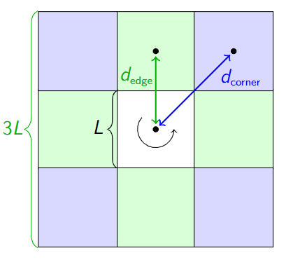 Using the principle of superposition, noting that the large square contains 4 edge copies and 4 corner copies,